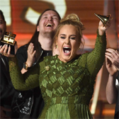 Adele ги освои наградите за најдобар албум, снимка и песна на годината, за “25” и “Hello”. Со тоа стана и првиот изведувач во историјата на Греми наградите кој двапати ги освоил најпрестижните три награди, повторувајќи го успехот од 2012 со албумот “21”.  Adele сега поседува вкупно 15 Греми награди.